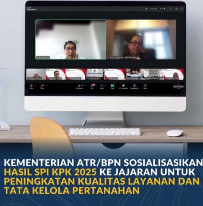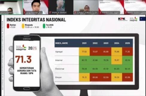 METRO UPDATE.COM – Jakarta, Hasil Survei Penilaian Integritas (SPI) untuk Kementerian Agraria dan Tata Ruang/Badan Pertanahan Nasional (ATR/BPN) Tahun 2025 telah dirilis oleh Komisi Pemberantasan Korupsi (KPK). Indeks Integritas Nasional ATR/BPN secara agregat berada di angka 71,3. Tenaga Ahli Menteri Bidang Ekonomi Pertanahan, Dedi Noor Cahyanto, meminta jajaran, khususnya Kepala Kantor Wilayah (Kakanwil) BPN dan Kepala Kantor Pertanahan (Kakantah) menempatkan perhatian serius atas angka tersebut agar bisa bertahap ditingkatkan secara signifikan.
