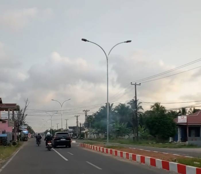 bagaikan ular sedang berjalan dan tergenang air. Sama halnya dengan lampu listrik sudah satu bulan lebih lampu jalan tidak berfungsi alias mati sepanjang jalan.