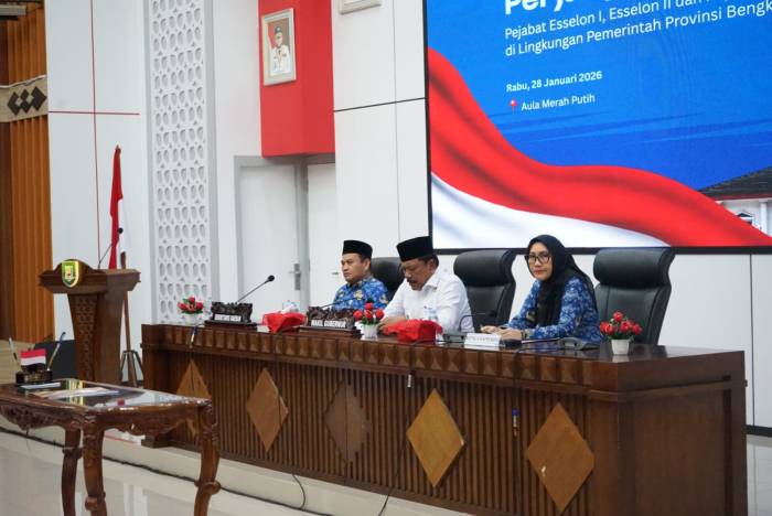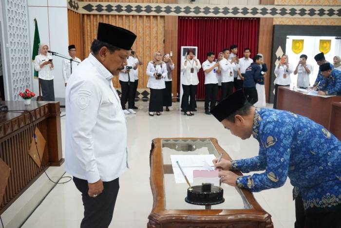 METRO UPDATE.COM – Bengkulu,Dalam rangka meningkatkan kualitas dan mutu kinerja perangkat daerah, Wakil Gubernur Bengkulu Mian memimpin penandatanganan Perjanjian Kinerja oleh seluruh Kepala Organisasi Perangkat Daerah (OPD) Pemerintah Provinsi Bengkulu. Kegiatan ini berlangsung di Aula Merah Putih Kantor Gubernur Bengkulu, Rabu (28/1).