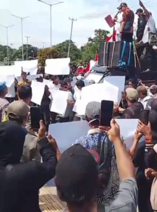 Massa membawa spanduk, bendera Merah Putih, serta menggunakan pengeras suara untuk menyampaikan penolakan terhadap aktivitas perkebunan sawit PT RAA yang dinilai bermasalah dari sisi perizinan, khususnya terkait HGU dan Izin Usaha Perkebunan Budidaya (IUP-B).